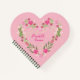 Un hermoso favor para su boda anfitriona este cuaderno en forma de corazón hace la declaración perfecta. Con un fondo rosado y una hermosa corona floral, su nombre está escrito en el medio usando un hermoso tipo de letra rosada. "Hostess" está escrito debajo de rosa. ¡Muéstrale cuánto la aprecias hoy! Arte floral creado por: AMBilustrations http://www.etsy.com/shop/AMBillustrations/