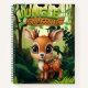 Personalize the back cover of this adorable "Jungle Welcome" notebook! Featuring a unique whimsical wild baby Reindeer cartoon graphic tropical Fawn animal character in a lush dusk forest scene, inviting you into a world of imagination and creativity. This Doe design is perfect for woodland safari lovers, nature wildlife fans, and anyone who enjoys cute Deer and cozy zoo vibes.