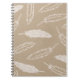 Un diario de moda con un patrón de plumas sobre un fondo kraft.
