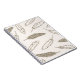 Un diario de moda con un patrón falso de plumas purpurinas.