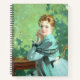 Este diseño presenta un cuadro del artista escocés George Henry (1858-1943), uno de los miembros más destacados de la Escuela de Arte de Glasgow, retrato de una bella joven llamada Felicity. Está sentada en una mesa y lleva puesto un vestido azul turquesa. Sus codos están descansando sobre la mesa y ella está sosteniendo sus manos juntas junto a su cara. Felicity empieza con atención al espectador. Claramente es una mujer elegante. Su pelo castaño-marrón está de moda y lleva una bufanda sobre su vestido, un poco más oscuro de turquesa que el vestido en sí. La vegetación de fondo da a entender que está sentada en el exterior en un jardín. La obra original fue pintada por George Henry en 1916.