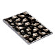 hurones dibujados a mano, cuaderno de patrones de xoxo y corazones, fondo negro.