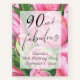 Elegante invitación de fiesta de cumpleaños 90 de Peonies con "90 & Fabulous" en un guión elegante y peonías acuarelas (rosas de peones).