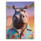 Gracioso hipopótamo usando una camisa hawaiana en una hermosa playa.