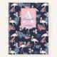 Monogramados, flamencos y hojas tropicales con estampado portátil, rosa rubor, blanco, azul polvoriento y marina. Puedes elegir entre una cubierta dura o softcover, así como diferentes colores en espiral, pero lo mejor de todo es elegir entre una variedad de diez interiores diferentes. © Julie McIver