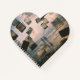 Two silhouetted figures stand on a beach surrounded by floating photographs, creating a dreamy atmosphere. The sky is filled with shimmering particles, enhancing the surreal mood.