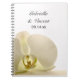 Personalizar de la elegante Flor Orquídea en un cuaderno de Boda blanco con los nombres personales de la novia y el novio y fecha para crear un único planificador, libro de consejos para los recién casados o libro de invitados para su ceremonia matrimonial. Este elegante libro de notas botánicas nupciales personalizadas incluye una fotografía floral de una flor de orquídea falaenopsis blanca con un fondo blanco brillante.