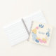 Este bloc de notas personalizado incluye su nombre en caligrafía de escritura rodeado por una hermosa flor de flores azul, amarillo y rosa.