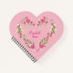Bonita corona floral de corazón rosa, este cuaderno en forma de corazón presenta un bonito diseño para la novia. su nombre está escrito en el medio con Bride abajo. ¡Haga su pedido hoy mismo!