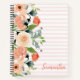 Un diseño moderno con flores de melocotón y terracota sobre un fondo a rayas. Personalice fácilmente el nombre con sólo unos cuantos clics.