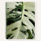 Portátil encuadernado en espiral para el esbozo o la escritura que incluye las cubiertas frontal y posterior con la imagen de una gran hoja de planta de Monstera variada, verde y blanca, comúnmente llamada planta suiza de queso. ¡Un bonito diseño floral! Seleccione las opciones de estilo del bloc de notas.