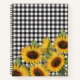 Cuaderno de revistas de cubierta dura de chapa negra y blanca y girasoles, perfecto para listas de verificación, registro en diario y más.