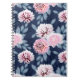 Cuaderno Flores blancas y rosas sobre azul oscuro.