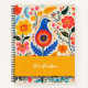 Vibrantes flores boho multicolores en estilos folclóricos cuaderno con un pájaro azul, puedes personalizar con tu nombre en etiqueta amarilla, con tipografía moderna. Diseño trendy - amarás tu planificador para negocio en casa escuela universidad
