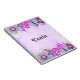 Añade tu nombre en estas flores y mariposas lindas sobre el diseño de patrones de fondo morado.
