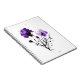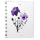 Una pintura acuática abstracta vibrante y expresiva de dos flores florecientes. Las flores se representan en tonos violeta y rosa, con contornos negros audaces y salpicaduras que aportan un ambiente dinámico y enérgico. El conjunto es moderno y contemporáneo.