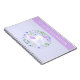 Este bonito cuaderno presenta un diseño de unicornio púrpura lindo y flores. Personalice con su nombre.