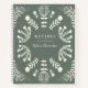 Un hermoso libro de recetas en blanco con una moderna cubierta de ilustracion de flores folclórico al estilo escandinavo en verde sabio, personalizado con tu nombre.