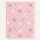 Tonos rosas, blancos y verdes, con fresas, flores y puntos sobre un fondo rosa pastel. Diseño acogedor para material escolar o de oficina.