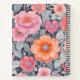 Una textura en acuarela suave y romántica, con flores rosas y naranjas que destacan sobre un fondo plateado que brilla con elegancia.