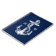 Un ancla blanca antigua hermosa con la cuerda sobre fondo de los azules marinos. Personalizar con las sus iniciales o el otro texto. El fondo es reemplazable tan no dude en substituir por su propia foto o modelo preferida de la playa. Para todos que aman el océano, la navegación, la arena y el mar.