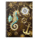 Cuaderno Fondo de madera con caballito de mar mecánico