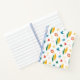 Patrón atómico moderado con bloc de notas de paleta de color retro.