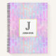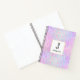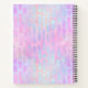 Cuaderno espiral con un patrón de fondo abstracto. Las acuarelas rosas moradas y azules componen este diseño artístico que presenta formas rectangulares verticales sobre un fondo suave de mosaico. Un cuadrado sobre la parte superior con un falso borde de Relieve metalizado dorado, tu texto personalizado dentro.