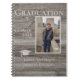 ¿Ir a la universidad? Guarde sus recuerdos escolares en este diseño de graduación que tiene un fondo rústico de madera, una plantilla de fotos y una tapa de graduación. Plantillas de año de clase de nombre, escuela y graduación.