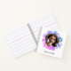Cree un portátil único con una foto favorita de usted y su mascota. La imagen elegida estará enmarcada por un elegante diseño floral rosa y azul. Debajo de la foto, puede personalizar el texto con su propio mensaje, como su nombre y el nombre de su mascota. Este encantador cuaderno con espiral es un regalo elegante y atento para los amantes de los animales.