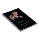 Un clásico fondo negro. Personaliza y añade una foto, nombre, edad. Texto blanco.