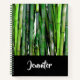 Cuaderno en espiral con un tema asiático. Una fotografía de una hilera de tallos de bambú verdes y verdosos.