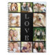 Un cuaderno negro de fotomontaje. Puedes personalizar con diez fotos. "AMOR" está escrito verticalmente en el medio en tipografía blanca abierta sobre un fondo negro.