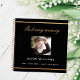 Un libro de invitados para un funeral o funeral. Un fondo negro clásico, un marco dorado falso en la parte delantera. Personalice y agregue una foto, nombre y fechas.