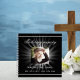 Un libro de invitados para un funeral o funeral. Un fondo negro clásico, un marco plateado falso en el frente. Las estrellas rayan detrás de la foto. Personalice y agregue una foto, nombre y fechas.