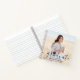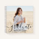 Agregue un toque personalizado y elegante a las decoraciones de la fiesta de graduación de la universidad o la escuela secundaria con un libro de invitados en espiral de 2 fotos personalizado. Las imágenes y todas las palabras en esta plantilla son fáciles de personalizar, incluyendo el mensaje de felicitación de los padres en la parte posterior. Las páginas interiores pueden estar rayadas o en blanco para usar como álbum de recortes, cuaderno o diario. El diseño presenta una elegante caligrafía de estilo manuscrito negro, tipografía minimalista moderna y elegante, y dos imágenes de su elección, como fotos de último año o imágenes de la ceremonia de graduación. Este libro de invitados único es una idea de regalo de graduación elegante y memorable. ¡Felicitaciones al graduado!