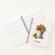 Portátil espiral con una gráfica veraniega de un montón de fresas desbordando en un cubo.