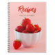 Captura tus recetas favoritas de una manera fresca y hermosa con este cuaderno de recetas personalizado que presenta una foto vibrante de Destei de fresas rojas maduras en un tazón blanco, sobre un fondo rosa suave. Ya sea que estés anotando favoritos de la familia, nuevas creaciones o ideas de comidas, este cuaderno agrega un toque dulce y alegre a tu rutina de cocina.