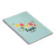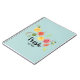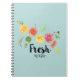 Un cuaderno en espiral con un diseño bonito con cítricos que se tambalean - limones, limas y pomelo. La tipografía de moda dice "Fresh" con un lindo y burlón subrayado.