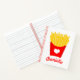 Expresar su amor por las patatas fritas con el bloc de notas francés de amor Fry Love diseñado por Enchantcapy Design Company. Este divertido diseño cuenta con un contenedor de frituras al estilo de la comida rápida roja decorado con un corazón blanco y lleno de patatas fritas amarillas. Personaliza con tu elección de nombre en texto rojo. ¡Es un gran regalo!