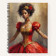 Una bailarina de ballet steampunk que combina la elegancia y la fuerza, con un traje rojo y dorado que brilla con toques metálicos.