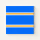 Este elegante diseño deportivo cuenta con pistas de carreras horizontales delgadas, dobles blancas y doradas, en medio de amplias franjas exteriores azules.
