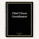 "Chief Chaos Coordinator" Funny Sayings, Black and Gold Custom Notebook.