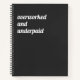 A funny, humorous (and probably true!) notebook with a dark grey background and modern, bold white typography that reads "Overworked and underpaid". A little subtle hint for your workplace perhaps?