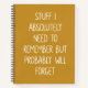 Simple lined yellow notebook for notes, to do lists, and more with a funny cover quote - Stuff I Absolutely Need to Remember But Probably Will Forget.