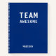 Funny Team Personalized Notes Office Meeting Notebook incluye el texto "Team Awesome" con su nombre personalizado debajo en un fondo azul. Personalice editando el texto en el cuadro de texto proporcionado. Diseñado por ©Evco Studio www.zazzle.com/store/evcostudio