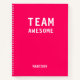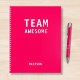 Funny Team Personalized Notes Office Meeting Notebook incluye el texto "Team Awesome" con su nombre personalizado debajo en un fondo neon rosado. Personalice editando el texto en el cuadro de texto proporcionado. Diseñado por ©Evco Studio www.zazzle.com/store/evcostudio