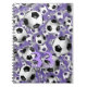 Este cuaderno de espiral de fútbol de los chicas presenta una aparentemente interminable descarga de balones de fútbol —el sueño o la pesadilla de un jugador de fútbol! El patrón de pelotas de fútbol tiene un sutil fondo a rayas en tonos morados y jersey de personalizable número y nombre de katz_d_zynes