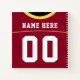 Este diseño es una camiseta de estilo futbolín / lacrosse en verde con rojo con guarnecido dorado y blanco, el color "piel" de fondo se puede cambiar, sólo hacer clic en PERSONALIZAR. Portátil espiral de 8,5" x 8,5" con cubiertas laminadas, y una selección de estilo de papel, incluyendo cuaderno de bocetos, gobernado, medio gobernado, gráfico. La parte delantera y trasera de los cuadernos tienen diseños de estilo jersey de personalizable, lo que le permite añadir el nombre y el número de su elección a la parte posterior, y el número de la parte delantera, usar los cuadros a la derecha de la imagen para cambiar el texto. Estos cuadernos son excelentes para bosquejar, hacer listas, conservar recetas, conservar tus estadísticas deportivas, e ideales como de vuelta a los regalos escolares para los estudiantes. Únicos regalos deportivos personalizados personalizados para los aficionados al deporte y los jugadores en su vida!