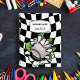 Haz que el regreso a la escuela o cualquier ocasión especial sea divertido con este cuaderno personalizado para amantes del béisbol. El diseño presenta una garra de monstruo que sostiene una pelota de béisbol rasgando un fondo a cuadros retro en blanco y negro. Para hacerlo aún más especial, también está monogramado y personalizado con nombre o iniciales o cualquier texto que desees. Este cuaderno genial es perfecto para los amantes del deporte o del béisbol, un gran complemento para los suministros escolares de tus hijos.